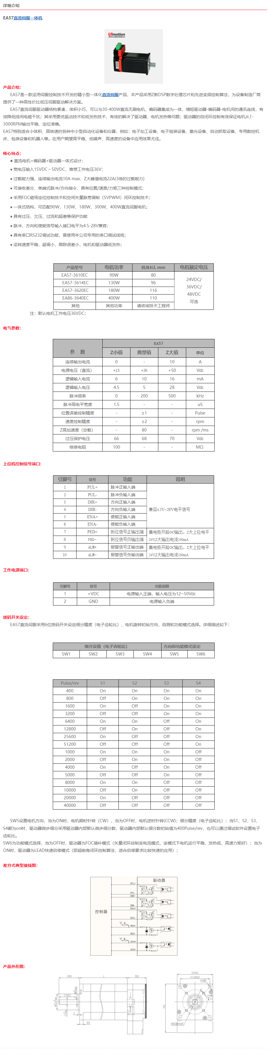 一体式直流伺服 57规格